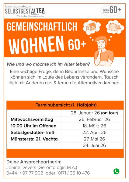 Gemeinsam werden bisherige Vorstellungen hinterfragt, neu gedacht und gegen spannendere Konzepte und Ideen ausgetauscht. Wir stellen die Weichen für ein gutes Altwerden! Für ein aktives Leben im Alter… heute schon... wann denn sonst?